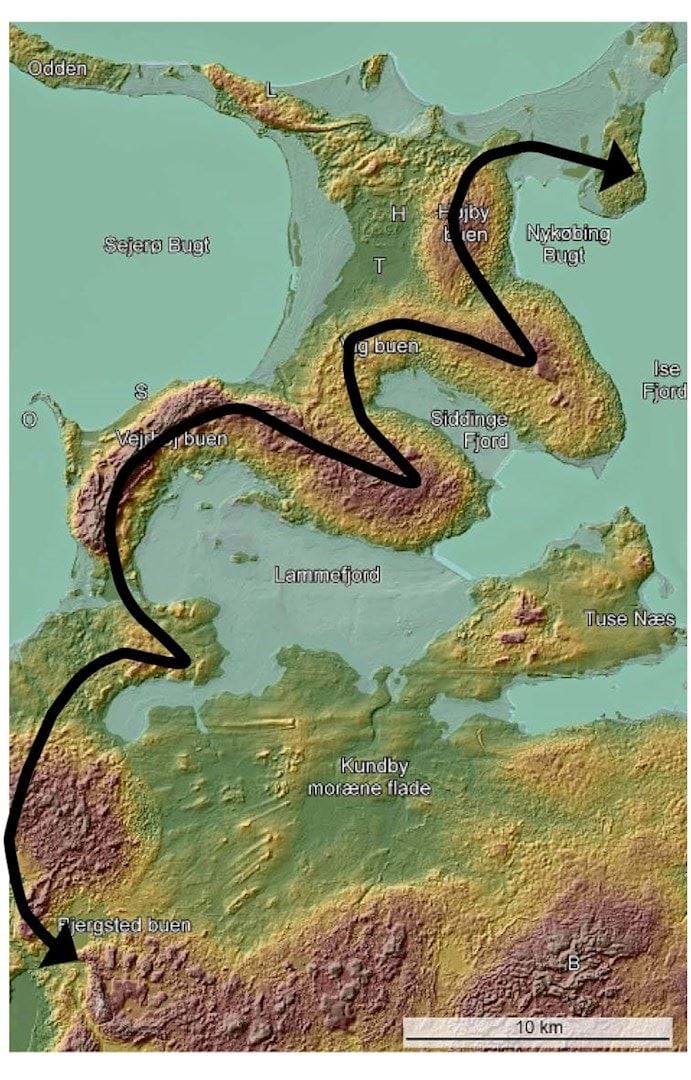 I den smeltende is dannede der sig store smeltevandssøer. Isøerne samlede der sig materiale, og da isen smeltede væk lå dette materiale tilbage som markante bakker i landskabet, som det fx ses ved Skamstrup eller ved Brorfelde. Området ved brorfelde har dog været dæket af to isfremstød på sammetid der yderligere har eroderet landskabet mellem bakkerne og skabt områdets dramatiske terræn.