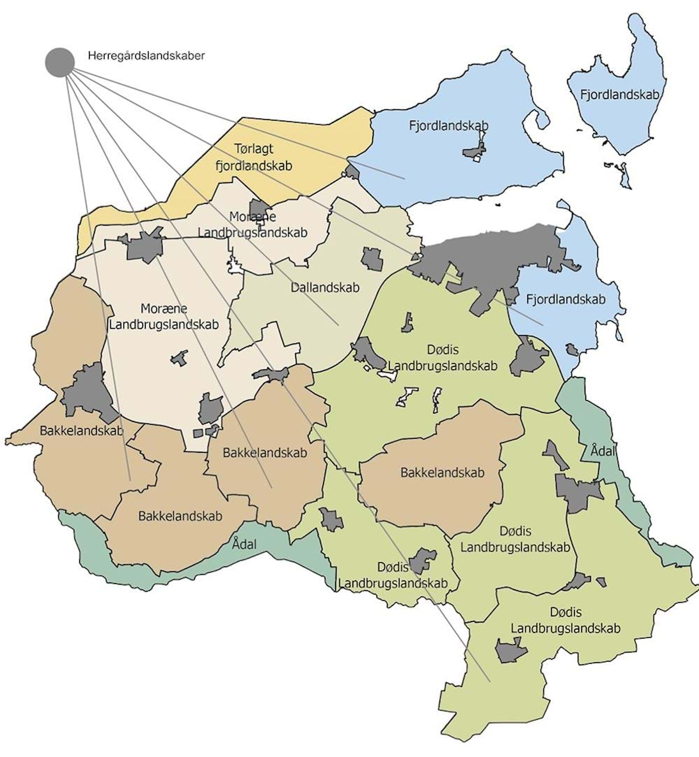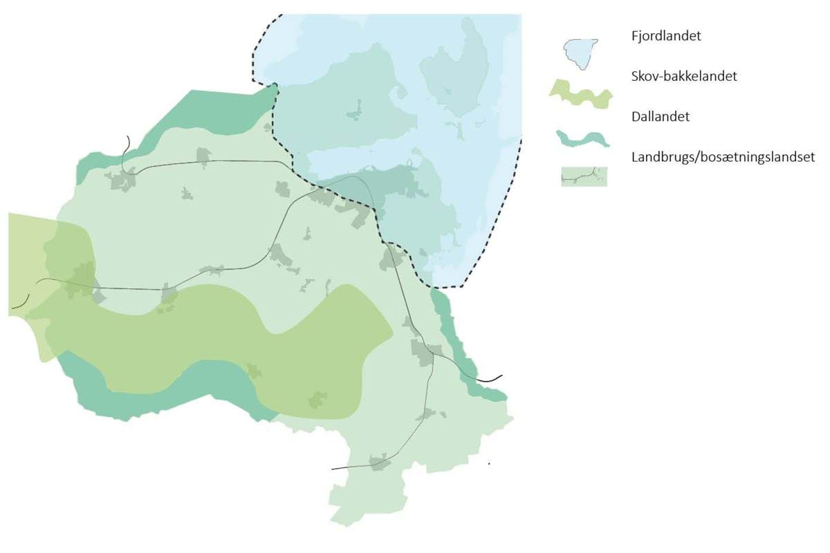 Forenklet kan man inddele landskabet i landskabstyper for at forstå landskabets forskellige egenskaber og for at sikre de væsentligste værdier, når der placeres nyt i landskabet:
