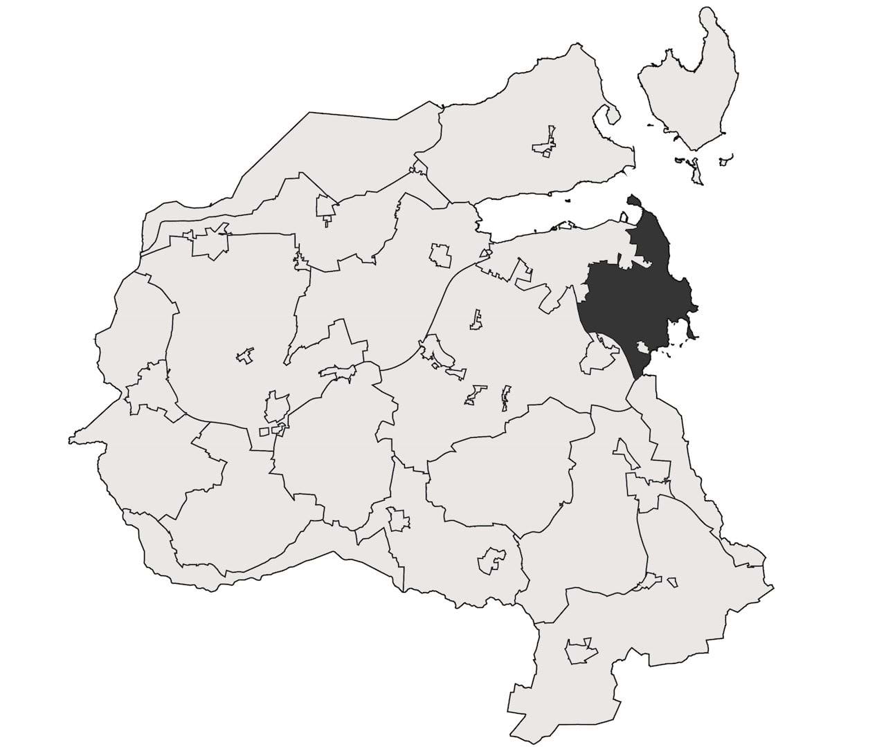 Karakterområdet strækker sig fra Holbæks bykant i den nordvestlige del og ned langs med fjordkysten til Tempelkrogen. Områdets vestlige grænse følger motorvejen, der udgør en både visuel og fysisk barriere i landskabet, og syd for Holbæk danner jernbanen en både visuel og fysisk grænse for karakterområdet.