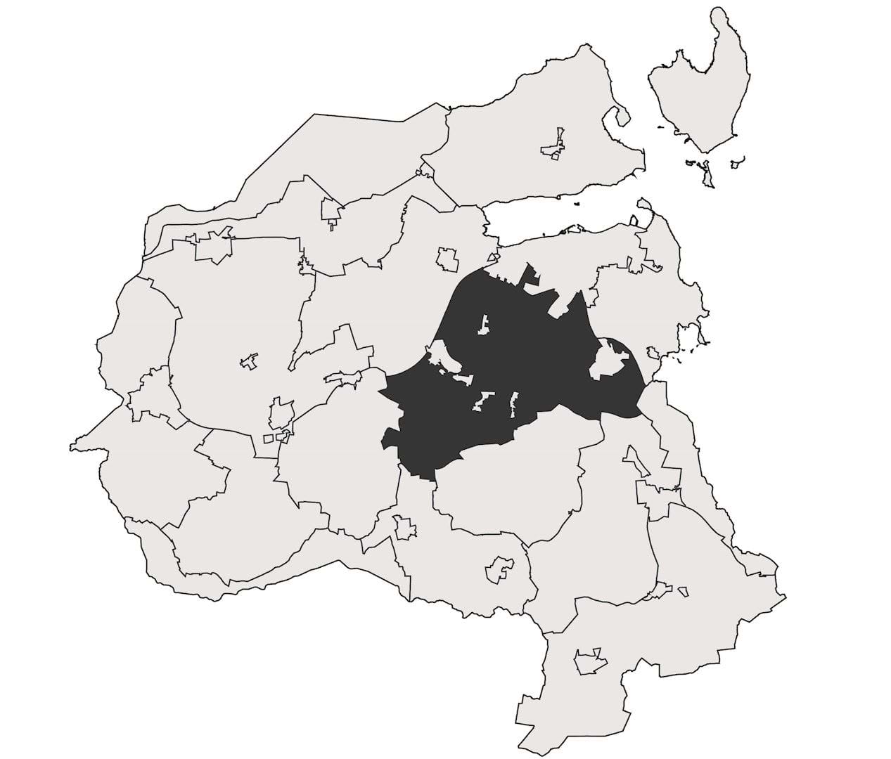 Landskabet er præget af byudvikling af de flere større byer der ligger i området.
